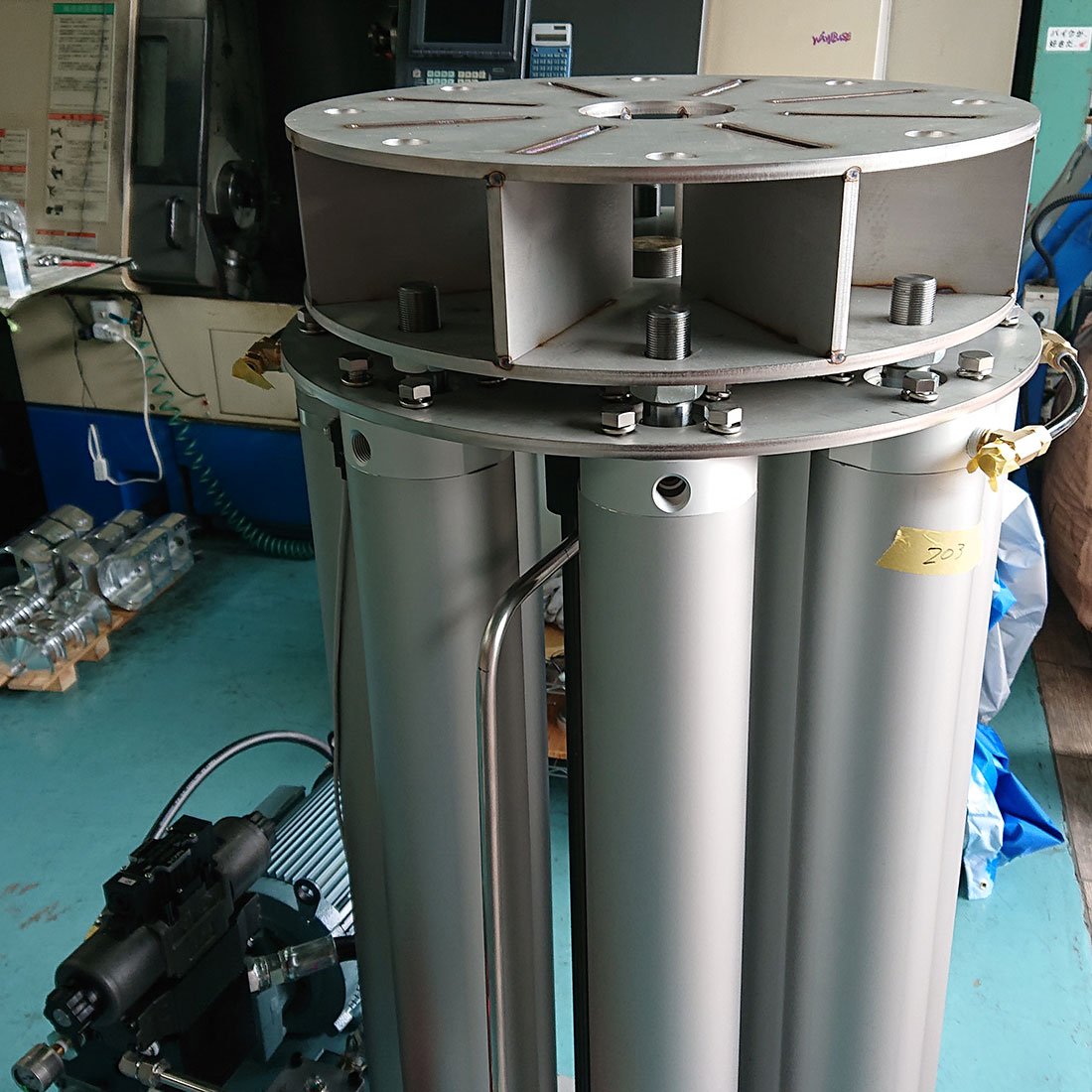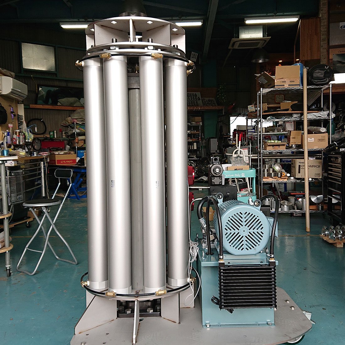 カスタムバイク龍のエアーコンプレッサーは、油圧力によるオイルシリンダーの稼働と同時にエアーシリンダーを連動させる独自構造によって、大きな振動・騒音が発生しません。またエネルギー効率が高く、クリーンな圧縮空気が取り出せるシリンダー型のエアーコンプレッサーです。